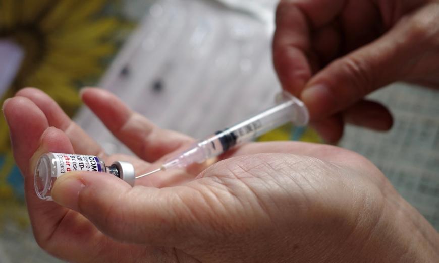 A health care worker prepares a COVID-19 vaccine in a file photo. (Bay Ismoyo/AFP via Getty Images)